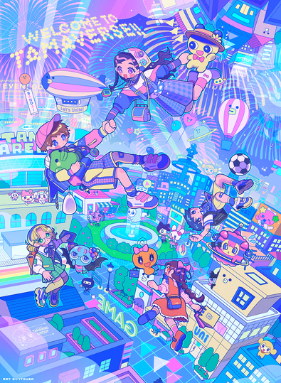 キャラクター, モチーフ, 背景, 文字などで構成された一枚絵です。カラフルな色が得意です。